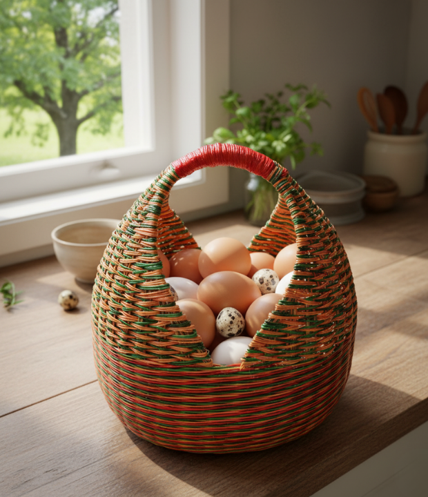 Cada canasto es tejido con paciencia y maestría, utilizando técnicas transmitidas de generación en generación, lo que garantiza resistencia, durabilidad y una belleza atemporal. Además de su uso tradicional para guardar hasta 30 huevos, puede emplearse como frutero, panera, florero o elemento decorativo para dar un toque artesanal y auténtico a cualquier ambiente del hogar.
