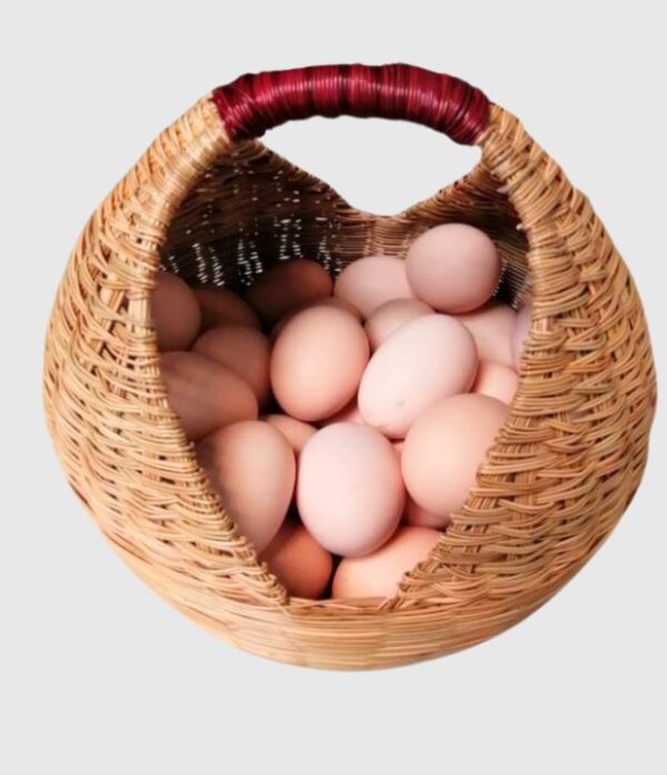 Canasto artesanal de esparto para huevos, hecho a mano en Cerinza, Boyacá. Capacidad para 30 huevos.